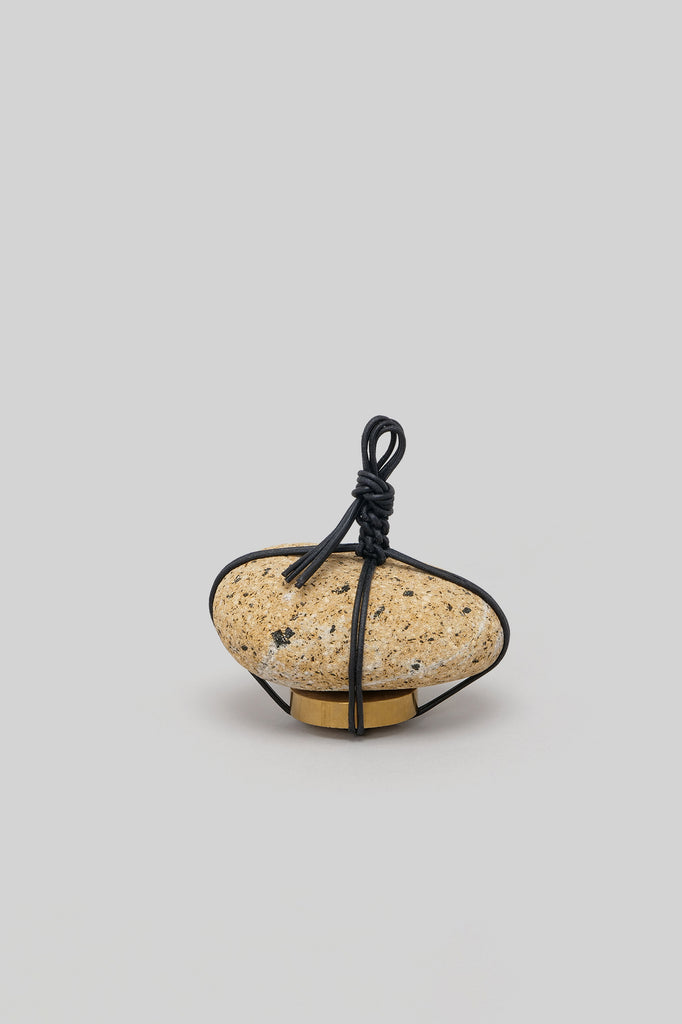 とめ石をモチーフとしており、ペーパーウェイトやオイルを垂らしてディフューザーとしてもお使いいただけます