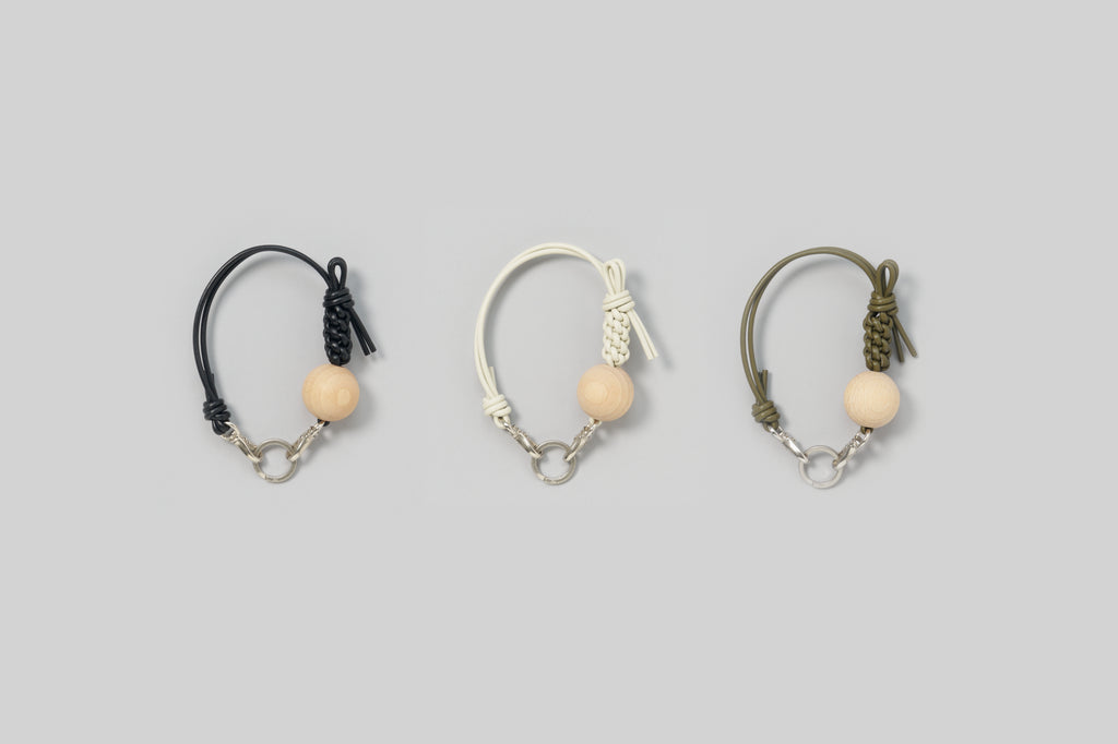 3つのマテリアルをひとつに組み合わせて、オブジェのようなストラップを作りました。