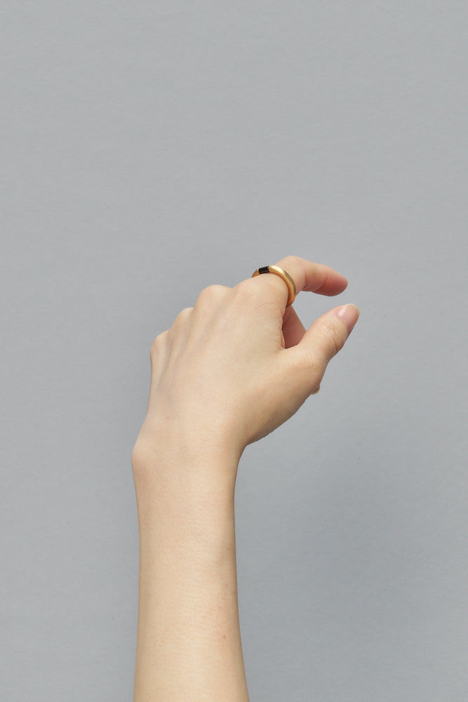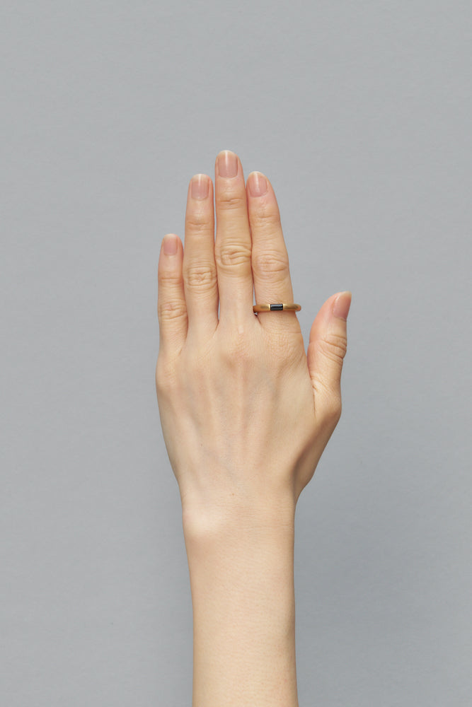 丸線の断面にnatural stoneを挟むような形状の新作リングです。